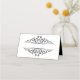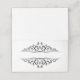 This folded name place card is shown in basic white with a black colour inside and with a elegant black flourish art print.