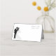 This folded name place card is shown in basic white with a wedding couple print and custom names.