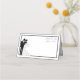 This folded name place card is shown in basic white with a wedding couple print and custom names.