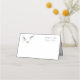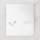 This folded name place card is shown in basic white with a wedding rings and doves print and custom names.