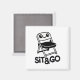 This adorable magnet features a funny design of a smiling face on a folding chair with the words "Sit & Go." Perfect for adding a touch of humour to your refrigerator or magnetic board.