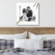 Simple Couple Photo Wedding Canvas. Date. Black and White filter applied to photo. Foliage and Feathers.