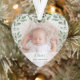 This beautiful Christmas holiday ornament for your baby's first Christmas features two of your favourite personal photos of your newborn baby, with a place to add their name. The heart shape is framed by elegant green watercolor leaves, for a botanical design that will be a treasured keepsake.