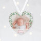 This beautiful Christmas holiday ornament for your baby's first Christmas features two of your favourite personal photos of your newborn baby, with a place to add their name. The heart shape is framed by elegant green watercolor leaves, for a botanical design that will be a treasured keepsake.