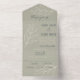 This all in one boho wedding invitation features a sage green, navy, and cream colour pallet and a simple, romantic foliage leaf and branch line art. A perfect fit for weddings with natural colour pallet, this all in one invitation is a unique invite that makes a great introduction to your big day!