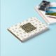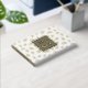 A simple yet eye-catching elegant seamless pattern featuring small watercolor compound ash leaf sprigs in muted almond taupe brown set against a stark white background that has a square clay brown inlay edged with real gold foil. A text template for your custom wording reads "guest book" on the front and your personalised title will appear on the spine. Both text templates are real foil too creating a timeless and luxury look to the cover.
