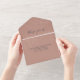 This all in one boho wedding invitation features a dusty terracotta, navy, and cream colour pallet and a simple, romantic foliage leaf and branch line art. A perfect fit for weddings with earth tone colour pallet, this all in one invitation is a unique invite that makes a great introduction to your big day!
