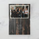 Design is composed of a luscious green foliage wreath on a dark wooden background with a holiday greeting written in playful cursive script typography. Add a custom photo inside.