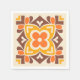 A colourful brown orange cream and yellow design featuring a symmetrical floral motif framed by bold geometric shapes. At the centre, a four-petal bloom anchors the design, surrounded by angular curves, teardrop accents, and mirrored heart-like forms. The high-contrast palette and rhythmic layout evoke both mid-century modern and folk-art sensibilities, creating a timeless visual emblem with sculptural clarity and ornamental depth.