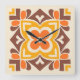 A colorful brown orange cream and yellow design featuring a symmetrical floral motif framed by bold geometric shapes. At the center, a four-petal bloom anchors the design, surrounded by angular curves, teardrop accents, and mirrored heart-like forms. The high-contrast palette and rhythmic layout evoke both mid-century modern and folk-art sensibilities, creating a timeless visual emblem with sculptural clarity and ornamental depth.