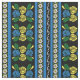 Canal boat and narrowboat fabric patterned with a traditional folk art style 'roses and castles' pattern of roses, daisies and stripes, in bright yellow, white and blue on black