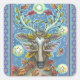 FOLK ART DEER IN AUTUMN FOREST, BIRD NEST & MOON SQUARE STICKER
