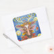 FOLK ART DEER IN AUTUMN FOREST, BIRD NEST & MOON SQUARE STICKER
