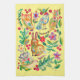 Folk Art Floral Animal Friends Pale Yellow Tea Towel
