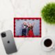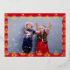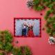 Charming folk style flowers pattern design with red background and personalised photo and text.