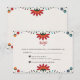 This Folk Art Floral Botanical Fiesta Spanish Wedding RSVP Card design features an intricate floral border in vibrant hues of red, pink, orange, and blue, creating a cheerful and lively frame for the invitation. The flowers are arranged with swirling vines and leaf motifs, giving the composition a harmonious flow and adding a sense of movement to the design. Small decorative details, such as dots and teardrop shapes, enhance the festive and folkloric feel, making this layout perfect for a joyful wedding celebration with a Mexican-inspired theme.