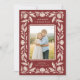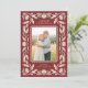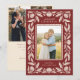 Send stylish, beautiful holiday greetings to your family and friends with this elegant, folk art inspired Christmas photo card. It features a hand drawn floral frame in ivory over a cranberry red background, as well as a scalloped inner design, framing your photo. The back contains three more photo templates, as well as more text templates for further personalisation.