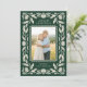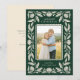 Send stylish, beautiful holiday greetings to your family and friends with this elegant, folk art inspired Christmas photo card. It features a hand drawn floral frame in ivory over a forest green background, as well as a scalloped inner design framing your photo. The back contains more text templates for further personalisation.