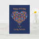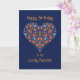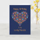 A pretty Birthday Card for a Fiancee, with a Heart-shaped Floral Pattern on a Deep Blue background, inspired by Eastern European Folk Art. Part of the Posh & Painterly 'Folk Heart' collection.