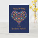 A pretty Birthday Card for a Partner, with a Heart-shaped Floral Pattern on a Deep Blue background, inspired by Eastern European Folk Art. Part of the Posh & Painterly 'Folk Heart' collection.