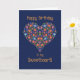 A pretty Birthday Card for a Sweetheart, with a Heart-shaped Floral Pattern on a Deep Blue background, inspired by Eastern European Folk Art. Part of the Posh & Painterly 'Folk Heart' collection.