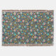 This folk art design features a pink, orange and teal floral pattern on a dark blue background.