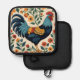 A blue rooster with gold wings and a bright red comb is surrounded by colourful flowers on this charming folk art style pot holder.  Perfect for anyone who loves folk art, country, and chickens.