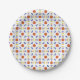Folk Art Neon Flower Geometric Pattern Paper Plate