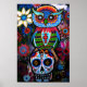 FOLK ART OWL DAY OF THE DEAD PAINTING POSTER