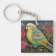 Folk Art Parakeet with Flowers Key Ring