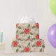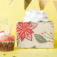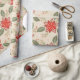 This pretty Christmas floral wrapping paper features a rustic folk art design in a printmaking style. Red poinsettias, green leaves and foliage, and white flowers on a tan background.