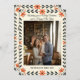 This Folk Art Christmas Photo Holiday Card features a stylish, dark grey and terracotta orange design with a cream background, offering a fresh, contemporary take on winter greetings.