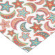 This colourful table runner has a Nordic style pattern of moons and stars. Each of the images is filled with Scandinavian patterns, making a colourful design. Colours used are blue, orange, gold, and more. The pattern is placed on a white background. Be sure to check our store for matching products.