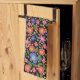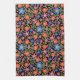 Folk Art Style Floral on Black Kitchen Towel