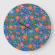 Folk Art Style Floral on Blue Acrylic Wall Clock