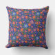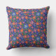 Folk Art Style Floral Pattern on Royal Blue Cushion