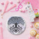 Folk art style Tree of Life silhouette with blue and purple watercolor background