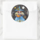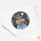 FOLK ART WITCH IN SPOOKY WOODS, BLACK CAT & OWL CLASSIC ROUND STICKER