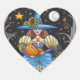 FOLK ART WITCH IN SPOOKY WOODS, BLACK CAT & OWL HEART STICKER