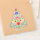 The sticker is meticulously crafted with precision, allowing for a clean and precise cut around the edges of the tree and its ornaments. This method creates a border around the design, making it easy to peel off from its backing while keeping the surrounding paper intact.