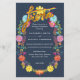 This stunning Fiesta themed wedding invitation can also be used for other events including fiesta bridal or couples shower, fiesta engagement, rehearsal dinner, fiesta birthday, fiesta retirement and more. Just edit the text as needed. It can be sued as a bilingual invitation, with text fields both sides for Mexican or Spanish themed events. Great budget value for a quality design! Features pretty folk art style flowers. Esta impresionante invitación de boda temática de Fiesta también se puede utilizar para otros eventos, como fiesta nupcial o despedida de soltera, fiesta de compromiso, cena de ensayo, fiesta de cumpleaños, fiesta de jubilación y más. Simplemente edite el texto según sea necesario. Se puede solicitar como invitación bilingüe, con campos de texto en ambos lados para eventos temáticos mexicanos o españoles. ¡Gran valour económico para un diseño de calidad! Cuenta con bonitas flores de estilo de arte popular.