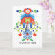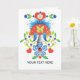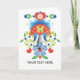 Stylised, Mod and Folksy images on an all-occasion greeting card. A vignette with folksy birds, carnations, daisies, butterflies and hearts for a pretty folksy look on a snow white background. Customise the cover and interior for your custom message or sentiment.
