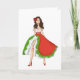 Folkloric Latina Dancer inspired by Mexico's colours. Cute Mexican dancer on a greeting card. This greeting card features a Latina in an inspired traditional green, white, and red dress. She also has a red rose on her hair. Great holiday greeting card for the month of May. Add your special message inside.