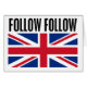 This greetings card is left blank so is suitable for any occasion - perfect for Championship winning seasons! A Union Jack (Union flag) in red white and blue, with the words "FOLLOW FOLLOW" above it in bold lettering.