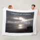 Wonderful Scripture John 8+12 that says, "I am the light of the world: he that followeth me shall not walk in darkness, but shall have the light of life." is on this Fleece Blanket. There is an Ocean Beach cene with the rays of the Sun coming through storm clouds and a Cross on a deck overlooking all, to inspire for years to come. The small printing on the bottom says, the rays are at the Cross.