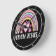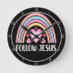 Follow Jesus Rainbow With Hearts Graphic Round Clock