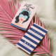 Our stylish and trendy business card features our hand-painted retro style beach beauty. "Follow Me" is designed in a stylish script font and beautifully incorporated into the business card design. The initials are placed on the girls sunglasses. The reverse side features a navy blue and pink strip background. customise with name and social media handle name . All illustrations contained in this beach beauty follow me business card are hand-drawn original artwork by Moodthology.
