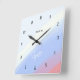 Featuring a soft diagonal gradient of light blue, blue, white, and pink — reminiscent of a serene sunset sky — with sleek black numbers and hands, this clock adds elegance and inspiration to your home or office.