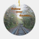 View of the Blue Ridge Mountains in Autumn, with train tracks fading off into the distance. Message reads: "Follow your dreams." Great gift for the college graduate or anyone beginning a new endeavour in life.