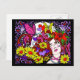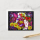Postcard with a colourful hand drawn illustration.